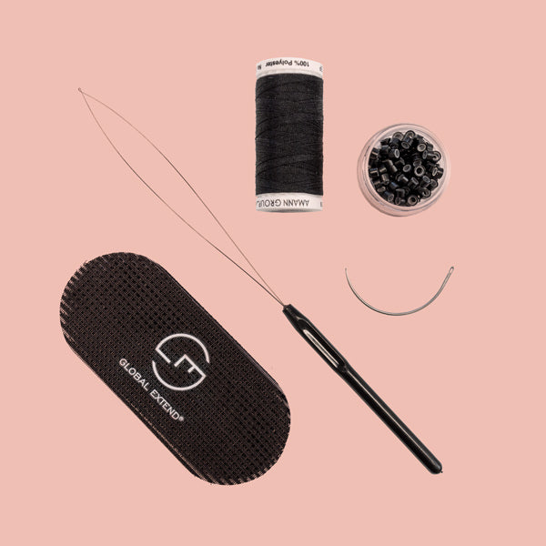 Of course, hair extensions do not consist of hair alone, but also of attachment points (such as keratin bonds, rings, or tapes). Here, you will find everything you need to reuse your extensions. But that’s not all – protective discs and finger guards help prevent burns when installing hair extensions. To keep your hair extensions looking beautiful, proper care is essential. You should always use a special extension brush for brushing, as it protects both the bonds and the hair. A bond remover and removal pliers are recommended for taking out keratin bond extensions, allowing you to remove them without leaving any residue. After removing the old strands and before installing new ones, you may find it helpful to use a clarifying shampoo. In this category, we also offer a colour ring made of human hair for colour matching. This makes selecting the right shade much easier than relying on monitor images, as colours can vary depending on screen settings.