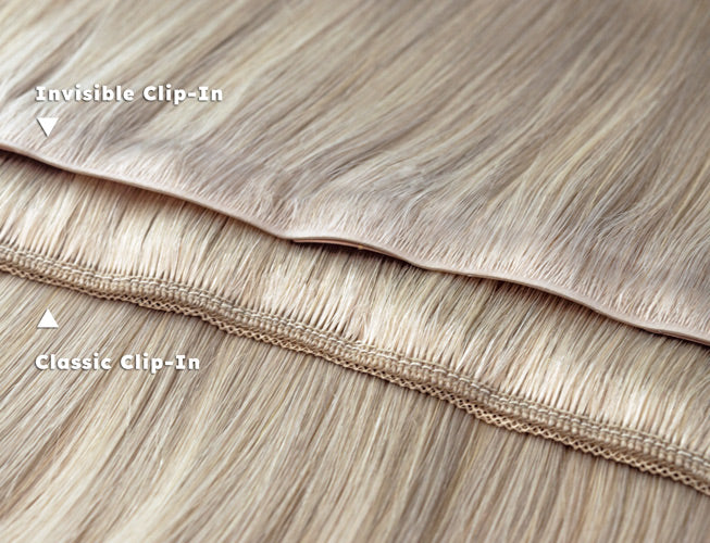The invisible clips, like all our extensions, are made from 100% high-quality human hair. This means you have many options when wearing and styling the clip extensions.