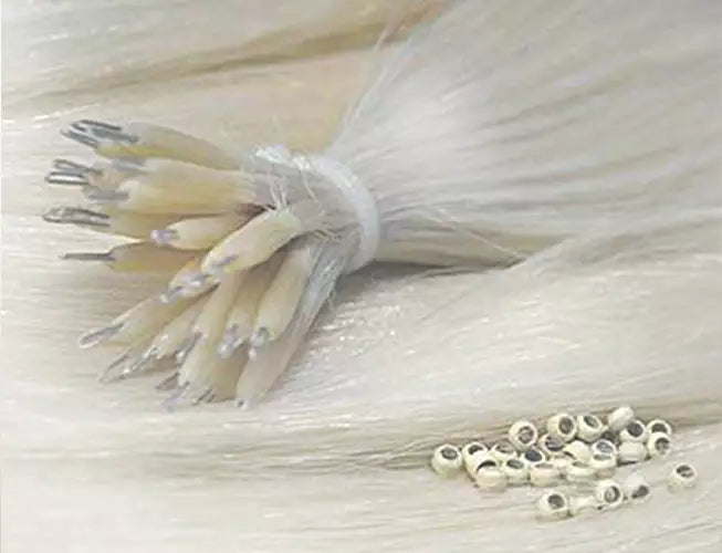 The rings of the nano ring extensions are much smaller than micro rings, which are very popular thanks to their flexible and reliable hold. This of course also applies to the less conspicuous nano ring extensions. Other advantages of our human hair nano ring extensions: